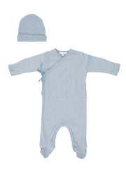 BEBE ORGANIC STEEL BLUE WRAP FOOTIE & HAT SET